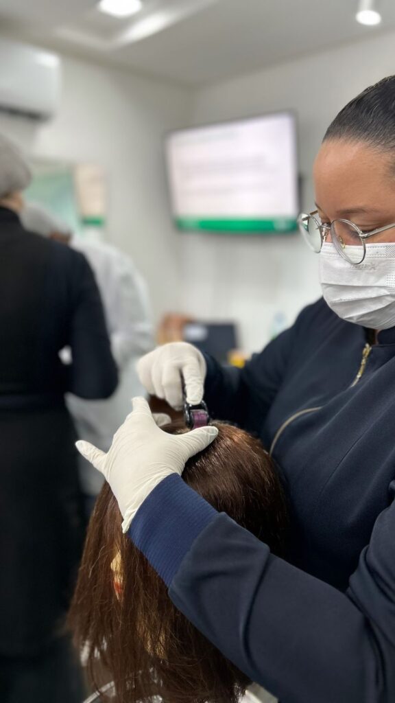 O desejo por mais conhecimento a levou a iniciar uma graduação em Estética e Cosmética. Durante os anos de estudo, algumas matérias se destacaram, despertando um interesse ainda maior, e uma delas foi a Introdução à Tricologia. “Foi um divisor de águas. Percebi que cuidar dos cabelos não era só sobre estética, mas também sobre ciência, saúde e bem-estar.